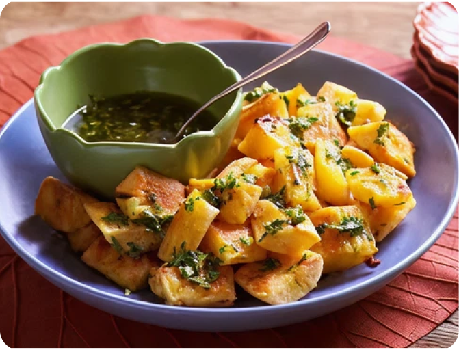 Purê de Mandioca com Salsa e Cebolinha Verde